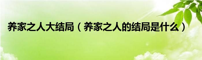 大家好,小生来为大家讲解下。养家之人大结局,养家之人的结局是什么很多人还不知道,现在让我们一起来看看吧!