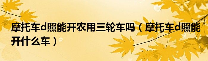 大家好,小生来为大家讲解下。摩托车d照能开农用三轮车吗,摩托车d照能开什么车很多人还不知道,现在让我们一起来看看吧!