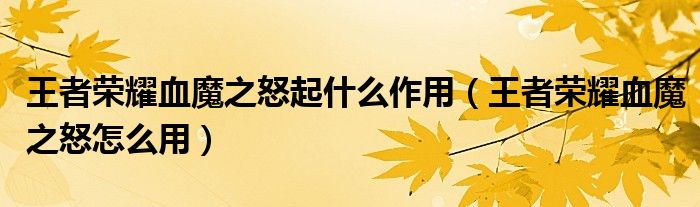 大家好,小生来为大家讲解下。王者荣耀血魔之怒起什么作用,王者荣耀血魔之怒怎么用很多人还不知道,现在让我们一起来看看吧!