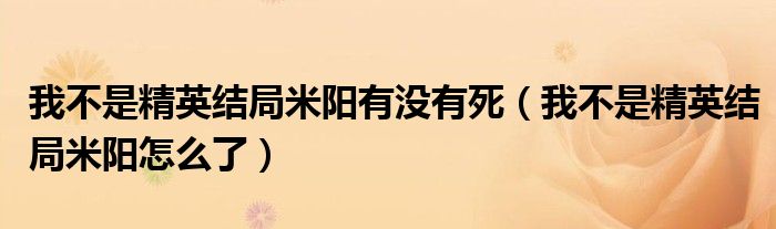 大家好,小生来为大家讲解下。我不是精英结局米阳有没有死,我不是精英结局米阳怎么了很多人还不知道,现在让我们一起来看看吧!