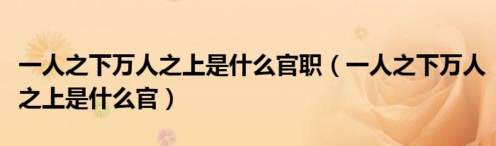 大家好,小生来为大家讲解下。一人之下万人之上是什么官职,一人之下万人之上是什么官很多人还不知道,现在让我们一起来看看吧!