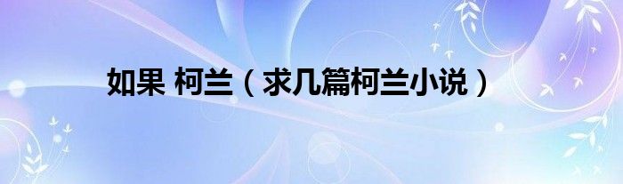大家好,小生来为大家讲解下。如果 柯兰,求几篇柯兰小说很多人还不知道,现在让我们一起来看看吧!