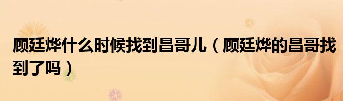 大家好,小生来为大家讲解下。顾廷烨什么时候找到昌哥儿,顾廷烨的昌哥找到了吗很多人还不知道,现在让我们一起来看看吧!