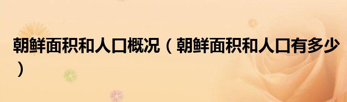 大家好,小生来为大家讲解下。朝鲜面积和人口概况,朝鲜面积和人口有多少很多人还不知道,现在让我们一起来看看吧!