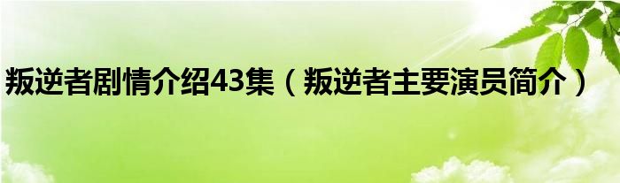 大家好,伊人来为大家解答以上问题。叛逆者剧情介绍43集,叛逆者主要演员简介很多人还不知道,现在让我们一起来看看吧!