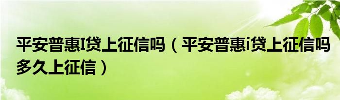大家好,小生来为大家讲解下。平安普惠I贷上征信吗,平安普惠i贷上征信吗多久上征信很多人还不知道,现在让我们一起来看看吧!