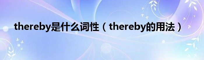 大家好,小生来为大家讲解下。thereby是什么词性,thereby的用法很多人还不知道,现在让我们一起来看看吧!