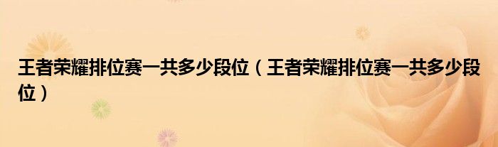大家好,小生来为大家讲解下。王者荣耀排位赛一共多少段位,王者荣耀排位赛一共多少段位很多人还不知道,现在让我们一起来看看吧!