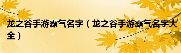 大家好,伊人来为大家解答以上问题。龙之谷手游霸气名字,龙之谷手游霸气名字大全很多人还不知道,现在让我们一起来看看吧!