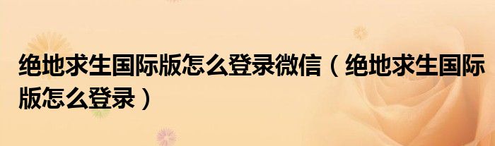 大家好,小生来为大家讲解下。绝地求生国际版怎么登录微信,绝地求生国际版怎么登录很多人还不知道,现在让我们一起来看看吧!
