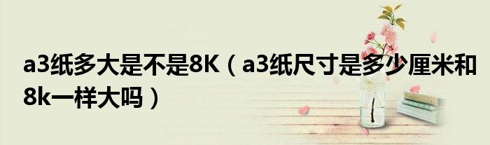 大家好,小生来为大家讲解下。a3纸多大是不是8K,a3纸尺寸是多少厘米和8k一样大吗很多人还不知道,现在让我们一起来看看吧!