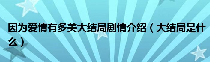 大家好,伊人来为大家解答以上问题。因为爱情有多美大结局剧情介绍,大结局是什么很多人还不知道,现在让我们一起来看看吧!