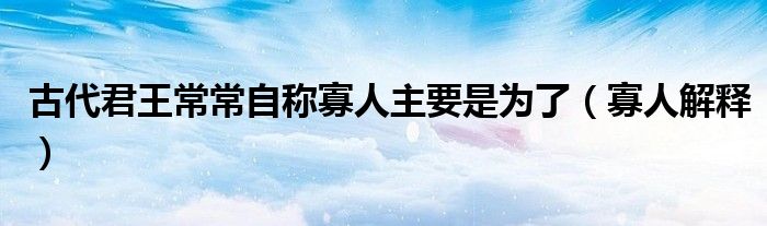 大家好,伊人来为大家解答以上问题。古代君王常常自称寡人主要是为了,寡人解释很多人还不知道,现在让我们一起来看看吧!