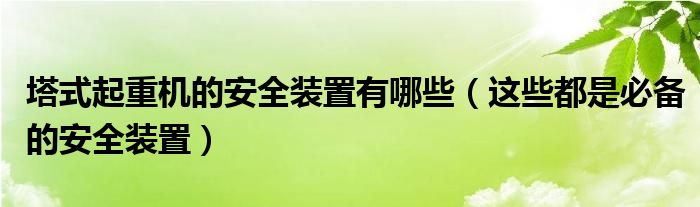 大家好,伊人来为大家解答以上问题。塔式起重机的安全装置有哪些,这些都是必备的安全装置很多人还不知道,现在让我们一起来看看吧!