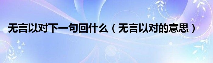 大家好,伊人来为大家解答以上问题。无言以对下一句回什么,无言以对的意思很多人还不知道,现在让我们一起来看看吧!