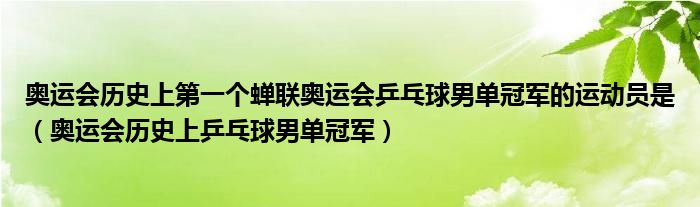 大家好,伊人来为大家解答以上问题。奥运会历史上第一个蝉联奥运会乒乓球男单冠军的运动员是,奥运会历史上乒乓球男单冠军很多人还不知道,现在让我们一起来看看吧!