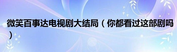 大家好,伊人来为大家解答以上问题。微笑百事达电视剧大结局,你都看过这部剧吗很多人还不知道,现在让我们一起来看看吧!