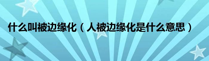大家好,小生来为大家讲解下。什么叫被边缘化,人被边缘化是什么意思很多人还不知道,现在让我们一起来看看吧!
