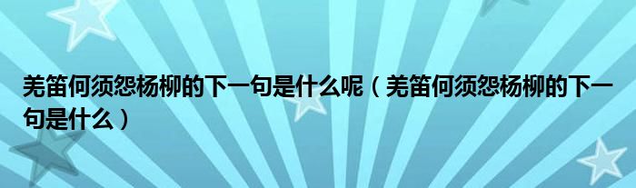 大家好,小生来为大家讲解下。羌笛何须怨杨柳的下一句是什么呢,羌笛何须怨杨柳的下一句是什么很多人还不知道,现在让我们一起来看看吧!