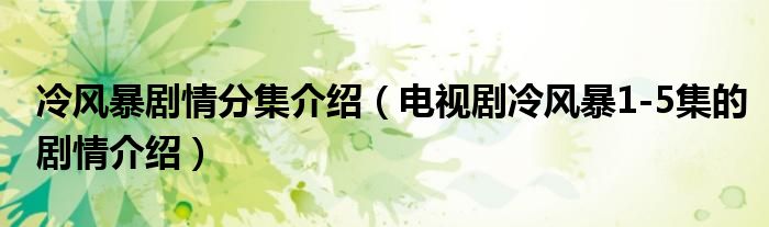 大家好,伊人来为大家解答以上问题。冷风暴剧情分集介绍,电视剧冷风暴1-5集的剧情介绍很多人还不知道,现在让我们一起来看看吧!
