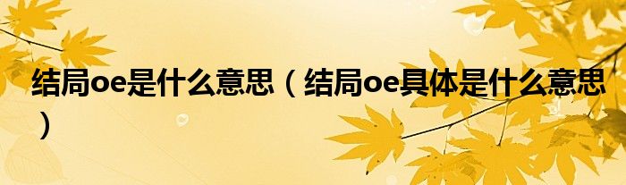 大家好,伊人来为大家解答以上问题。结局oe是什么意思,结局oe具体是什么意思很多人还不知道,现在让我们一起来看看吧!