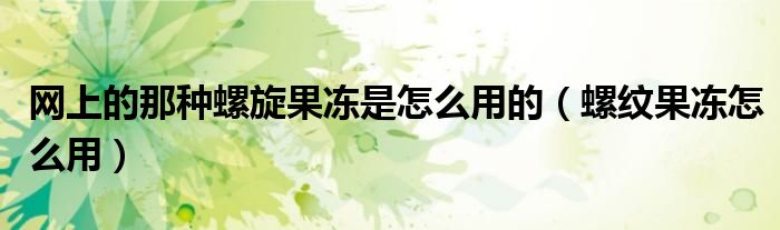 大家好,小生来为大家讲解下。网上的那种螺旋果冻是怎么用的,螺纹果冻怎么用很多人还不知道,现在让我们一起来看看吧!