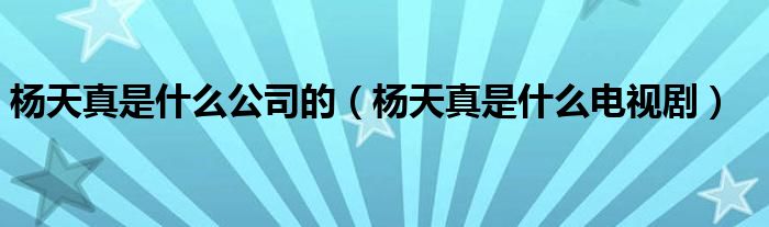 大家好,小生来为大家讲解下。杨天真是什么公司的,杨天真是什么电视剧很多人还不知道,现在让我们一起来看看吧!