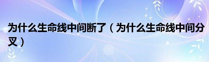 大家好,小生来为大家讲解下。为什么生命线中间断了,为什么生命线中间分叉很多人还不知道,现在让我们一起来看看吧!