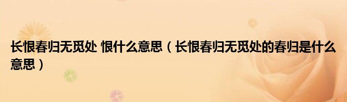 大家好,小生来为大家讲解下。长恨春归无觅处 恨什么意思,长恨春归无觅处的春归是什么意思很多人还不知道,现在让我们一起来看看吧!