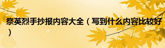 大家好,伊人来为大家解答以上问题。祭英烈手抄报内容大全,写到什么内容比较好很多人还不知道,现在让我们一起来看看吧!