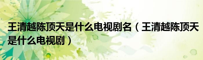 大家好,小生来为大家讲解下。王清越陈顶天是什么电视剧名,王清越陈顶天是什么电视剧很多人还不知道,现在让我们一起来看看吧!