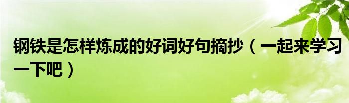 大家好,伊人来为大家解答以上问题。钢铁是怎样炼成的好词好句摘抄,一起来学习一下吧很多人还不知道,现在让我们一起来看看吧!