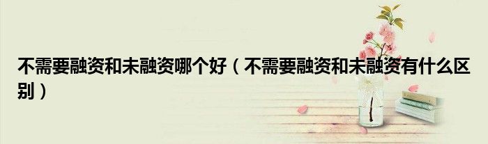 大家好,小生来为大家讲解下。不需要融资和未融资哪个好,不需要融资和未融资有什么区别很多人还不知道,现在让我们一起来看看吧!