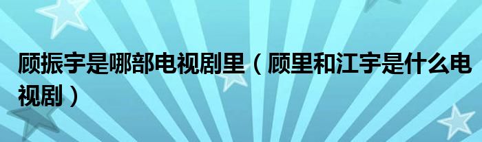 大家好,小生来为大家讲解下。顾振宇是哪部电视剧里,顾里和江宇是什么电视剧很多人还不知道,现在让我们一起来看看吧!