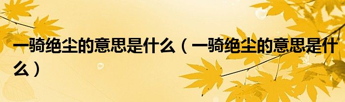 大家好,小生来为大家讲解下。一骑绝尘的意思是什么,一骑绝尘的意思是什么很多人还不知道,现在让我们一起来看看吧!