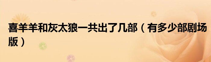 大家好,伊人来为大家解答以上问题。喜羊羊和灰太狼一共出了几部,有多少部剧场版很多人还不知道,现在让我们一起来看看吧!