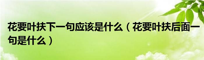 大家好,小生来为大家讲解下。花要叶扶下一句应该是什么,花要叶扶后面一句是什么很多人还不知道,现在让我们一起来看看吧!