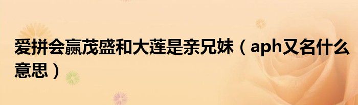 大家好,小生来为大家讲解下。爱拼会赢茂盛和大莲是亲兄妹,aph又名什么意思很多人还不知道,现在让我们一起来看看吧!