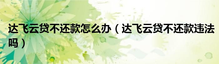 大家好,小生来为大家讲解下。达飞云贷不还款怎么办,达飞云贷不还款违法吗很多人还不知道,现在让我们一起来看看吧!