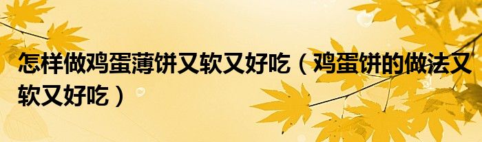 大家好,小生来为大家讲解下。怎样做鸡蛋薄饼又软又好吃,鸡蛋饼的做法又软又好吃很多人还不知道,现在让我们一起来看看吧!