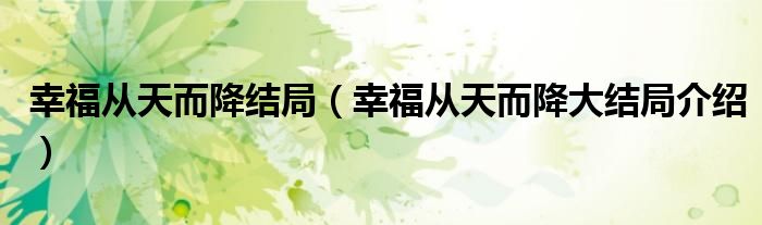 大家好,伊人来为大家解答以上问题。幸福从天而降结局,幸福从天而降大结局介绍很多人还不知道,现在让我们一起来看看吧!