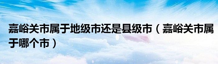 大家好,小生来为大家讲解下。嘉峪关市属于地级市还是县级市,嘉峪关市属于哪个市很多人还不知道,现在让我们一起来看看吧!