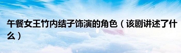 大家好,伊人来为大家解答以上问题。午餐女王竹内结子饰演的角色,该剧讲述了什么很多人还不知道,现在让我们一起来看看吧!