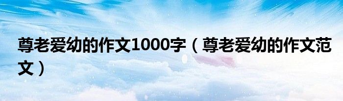 大家好,伊人来为大家解答以上问题。尊老爱幼的作文1000字,尊老爱幼的作文范文很多人还不知道,现在让我们一起来看看吧!