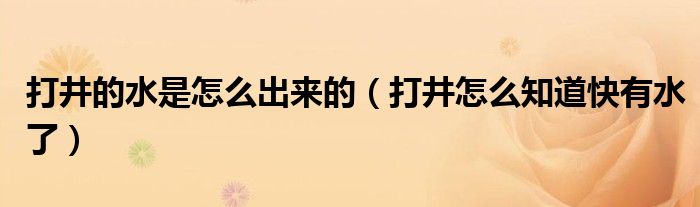 大家好,小生来为大家讲解下。打井的水是怎么出来的,打井怎么知道快有水了很多人还不知道,现在让我们一起来看看吧!