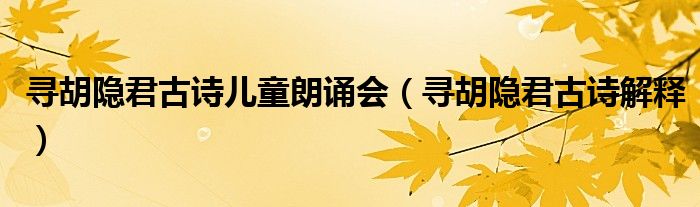 大家好,小生来为大家讲解下。寻胡隐君古诗儿童朗诵会,寻胡隐君古诗解释很多人还不知道,现在让我们一起来看看吧!