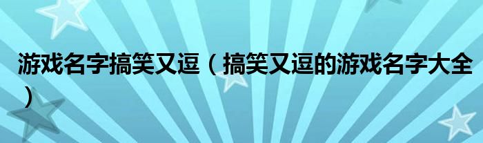 大家好,伊人来为大家解答以上问题。游戏名字搞笑又逗,搞笑又逗的游戏名字大全很多人还不知道,现在让我们一起来看看吧!
