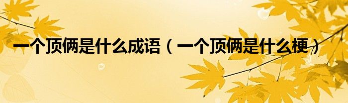 大家好,小生来为大家讲解下。一个顶俩是什么成语,一个顶俩是什么梗很多人还不知道,现在让我们一起来看看吧!
