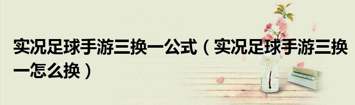 大家好,小生来为大家讲解下。实况足球手游三换一公式,实况足球手游三换一怎么换很多人还不知道,现在让我们一起来看看吧!