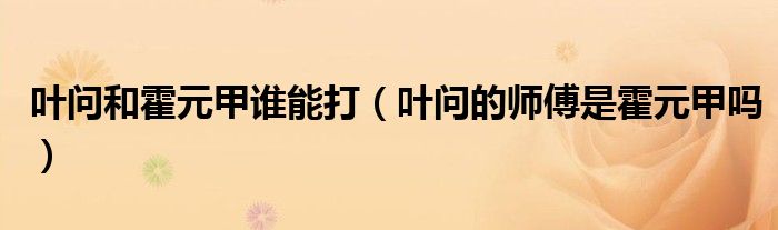 大家好,小生来为大家讲解下。叶问和霍元甲谁能打,叶问的师傅是霍元甲吗很多人还不知道,现在让我们一起来看看吧!
